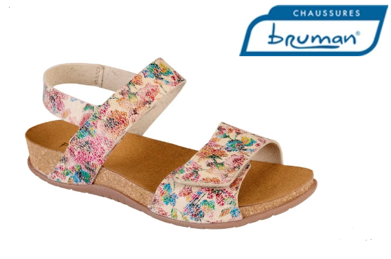Sandale femme avec réglage sur la cheville et l'avant pied par bande auto-agrippante et équipé d'une semelle ergonomique adaptée.