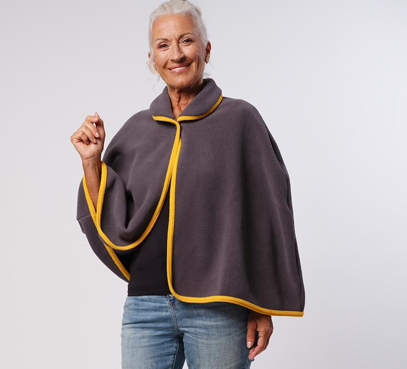 - Vêtement spécialement étudié pour des personnes ayant des difficultés à s'habiller, la cape polaire est un vêtement facile à enfiler car il n'a pas de manches.