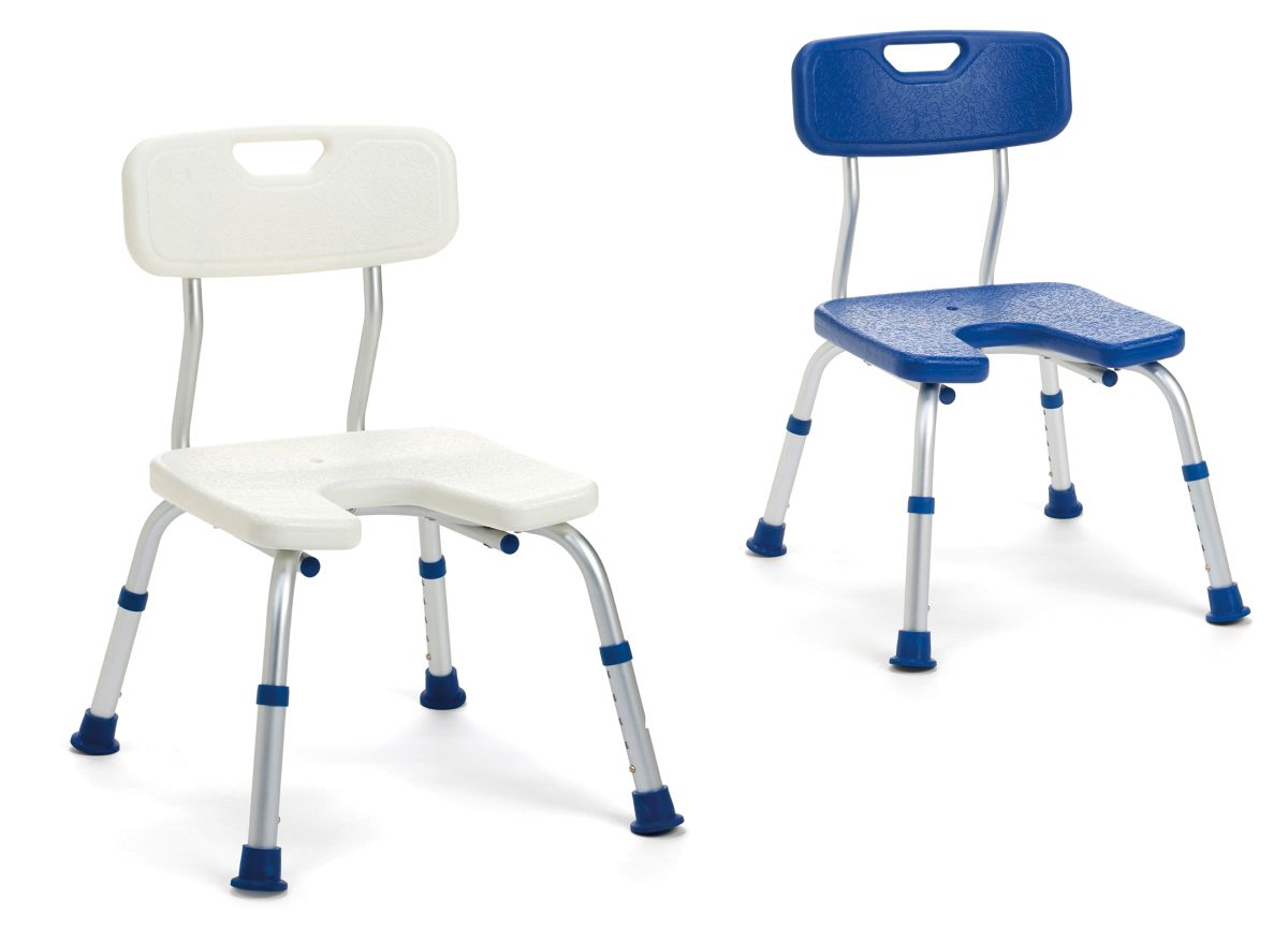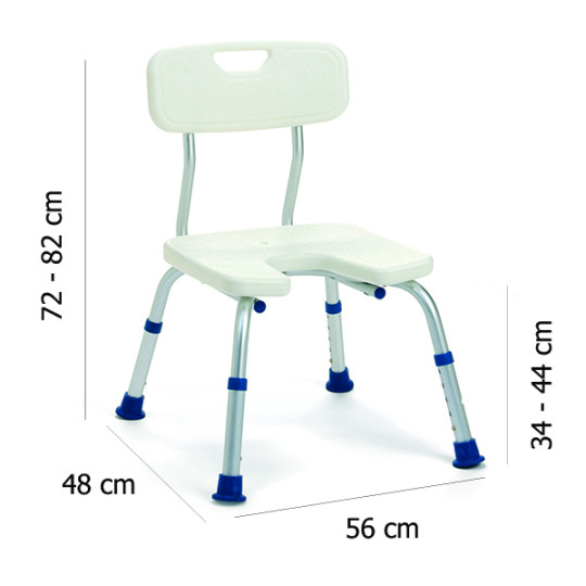 Chaise de douche avec découpe pour faciliter la toilette.