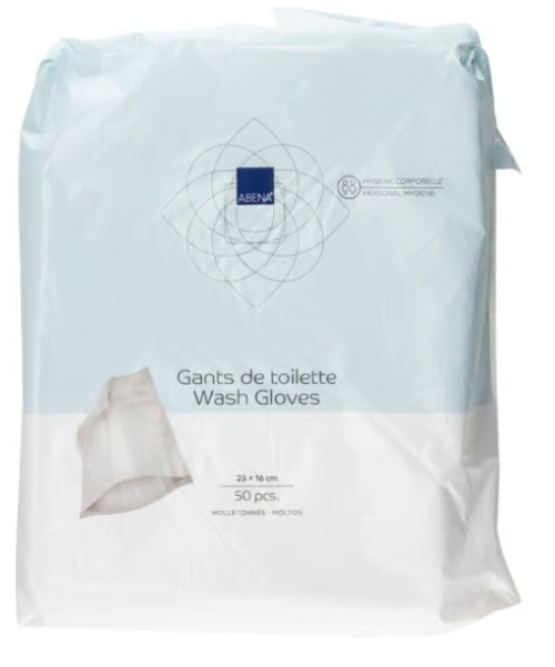 Avant d’utiliser le gant de toilette, enfiler un gant en nitrile en dessous permet généralement de protéger les mains des bactéries et des virus.