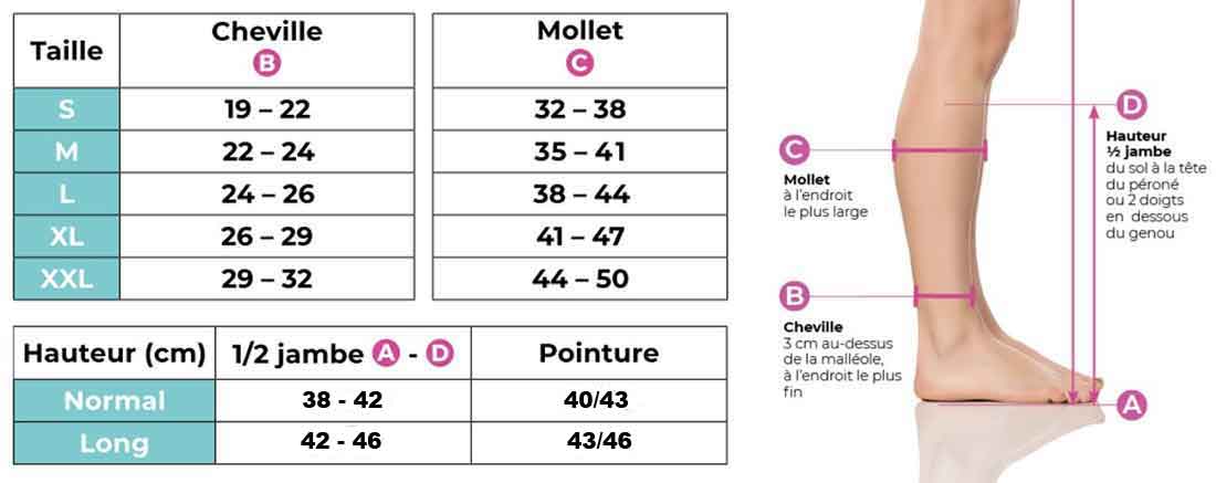 Chaussettes de contention Active Coton Bio Homme Classe 2: Noir L Long