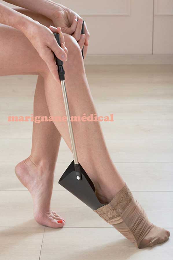 Permet la mise en place parfaite du bas ou de la chaussette chez toute personne, qu'elle soit à mobilité réduite ou simplement désireuse d'un plus grand confort d'application.