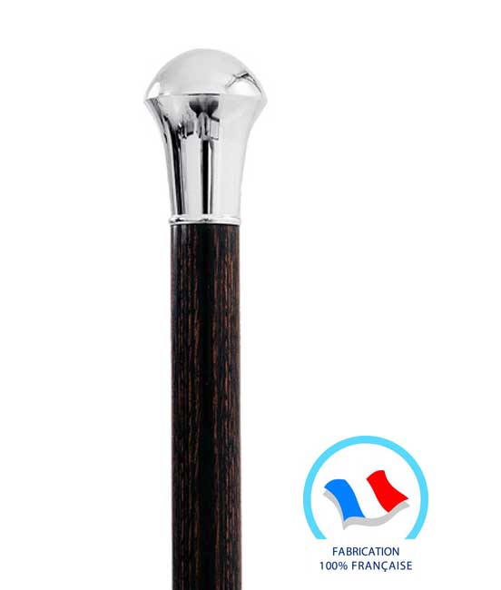 Boule en métal argenté sur fût en fibre de carbone plaqué macassar