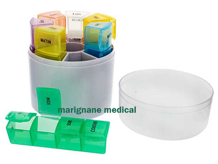 Le pilulier hebdomadaire cylindrique Estipharm est un accessoire médical qui permet d’organiser au mieux la prise de médicaments pendant la semaine.