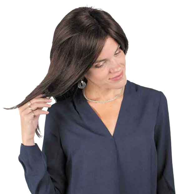 Pour laver votre perruque (environ 3 fois par mois), trempez-la dans de l'eau froide avec une noisette de shampoing spécial perruque, pendant un quart d'heure, puis rincez-la à l'eau claire.