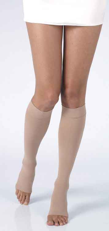 - Un confort au genou optimisé par un tricotage spécifique ainsi qu'une grande facilité d'enfilage et de retrait obtenue par un assemblage optimisé des fils.