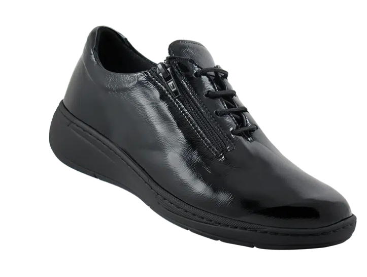 Fermeture éclair sur le bord latéral du laçage augmentant l’ouverture et facilitant le chaussage.