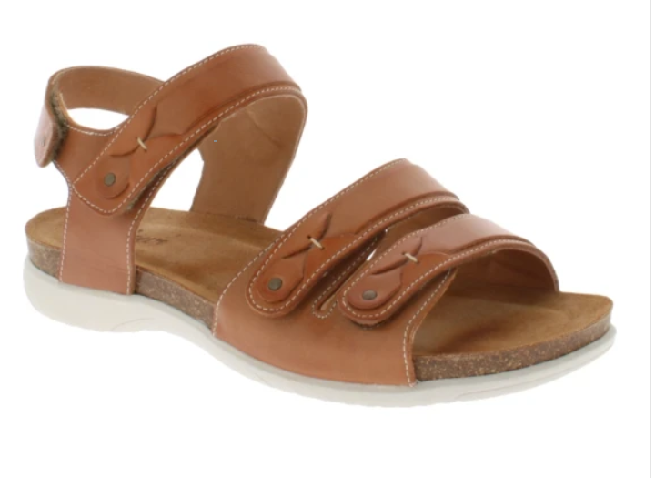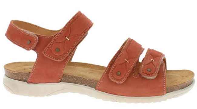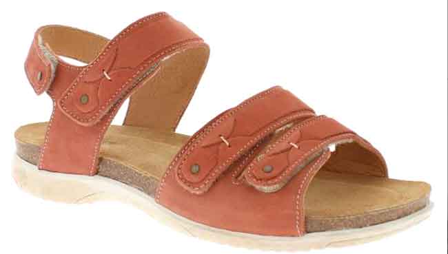 Cette sandale confortable pour femme est disponible en couleur rouille ou cuir marront de la pointure 36 à 41.