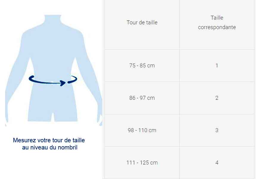 - Adapter le bandage au tour de taille en positionnant la fixation. Le bandage doit être bien plaqué, sans serrer de façon excessive.