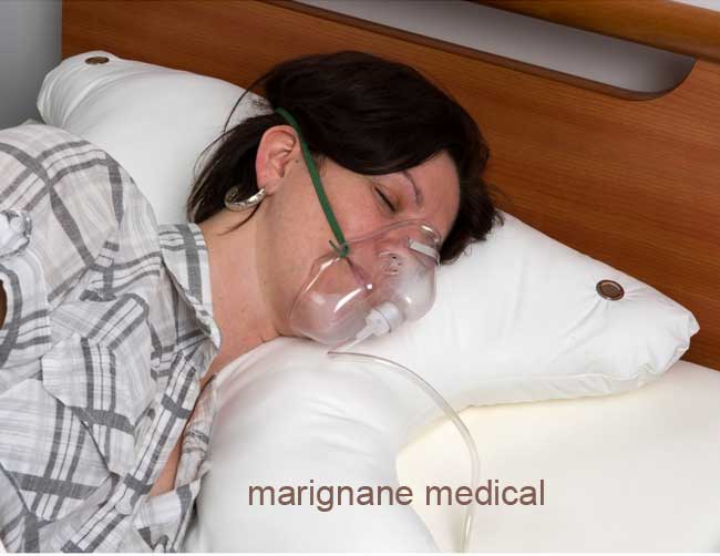 Cet oreiller ergonomique a été spécialement conçu pour les personnes qui doivent dormir avec un masque à oxygène.