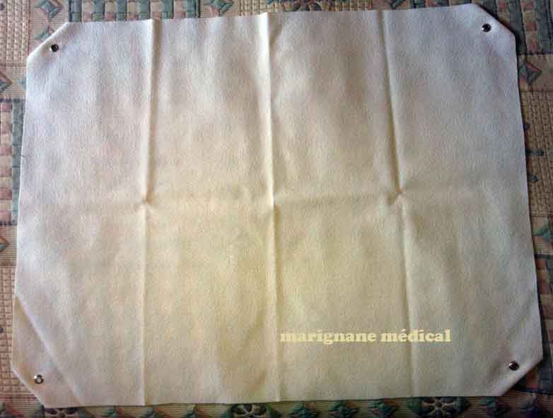 En PVC avec œillets à chaque coin doublée avec une couche de coton molleton ou bouclette en 70 x 90 cm