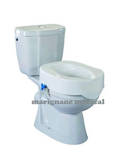Avec patte de fixation s'adapte sur des toilettes standards et  permet une réhausse de 15 cm pour un poids maximum supporté de 185 kg.