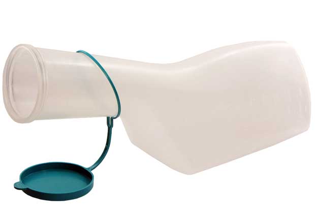 Cet urinal homme avec bouchon peut recueillir les urines d’un homme en cas d'incontinence et de mobilité réduite