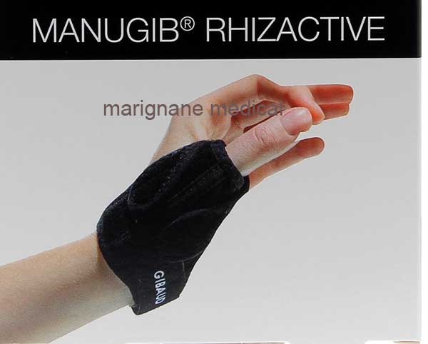 Dénomination : Orthèse de pouce Manugib RhizactiveDestination : Pour immobilisation, stabilisation du poignet et de la colonne du pouceFabricant : Gibaud/OssurInstructions : Lire attentivement la noticePrudence : En cas de doute, consultez votre médecin ou un professionnel de santé.Ce dispositif médical est un produit de santé réglementé qui porte, au titre de cette réglementation, le marquage CE
