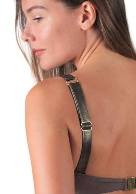 . Bretelles réglages et fermeture au dos par clip en zamak (Inoxydable, ne chauffe pas)
