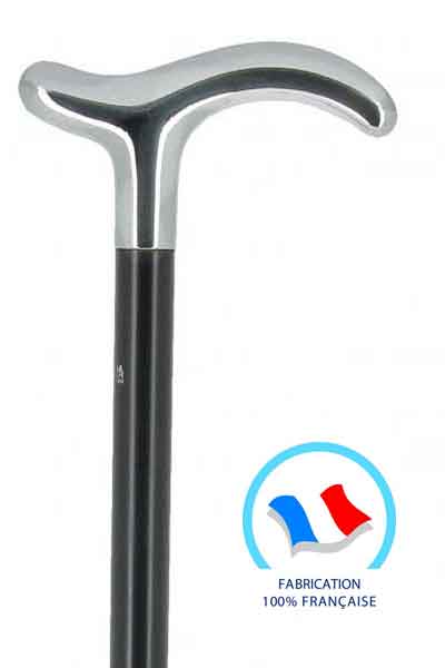 Canne bâton en hêtre laqué noir,poignée crochet chromée unie .