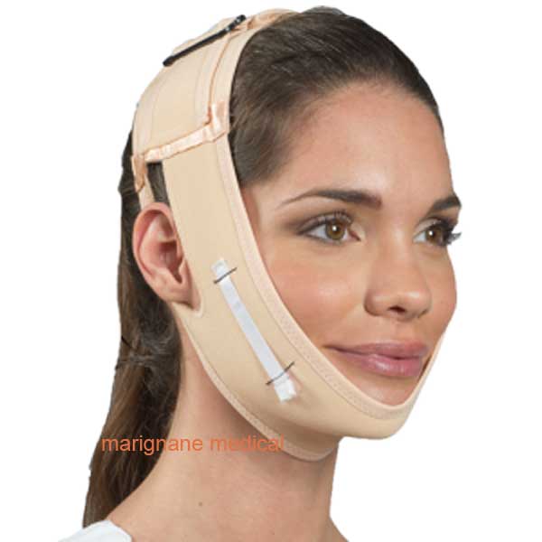 Fabriquée avec un tissu spécial Coolmax offrant un soutien optimal, ce vêtement extrêmement léger est adapté aux chirurgies du menton et lifting.