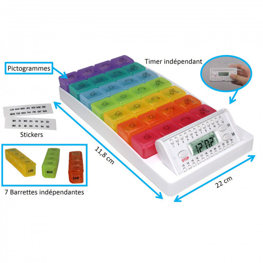 Pilulier électronique hebdomadaire avec alarmes Les piluliers électroniques avec alarmes vous aident à mieux vous organiser et ne plus oublier vos prises de médicaments. ...En savoir plus